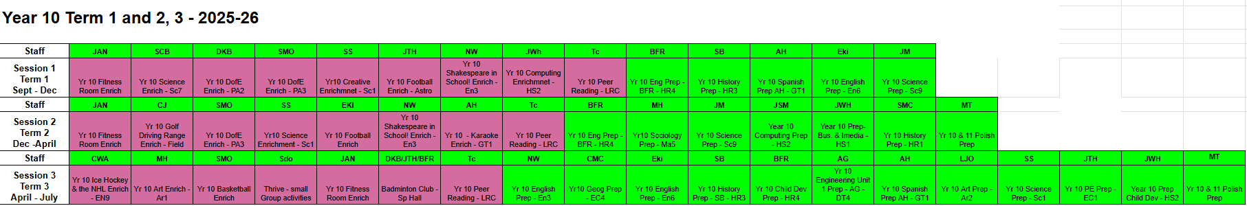 Year 10 - Pupils complete 1 or 2 terms of Enrichment during period 6 on a Monday alongside 1 or 2 terms of Prep. Enrichment activities in year 10 include activities such as , sports (Golf, Lacrosse, Fitness room), science, computing, textiles and Dofe. Prep affords students the chance to work with subject staff for a term on improving their knowledge and understanding in specific examination courses. The sessions focus on reviewing content of the GCSEs and revision.